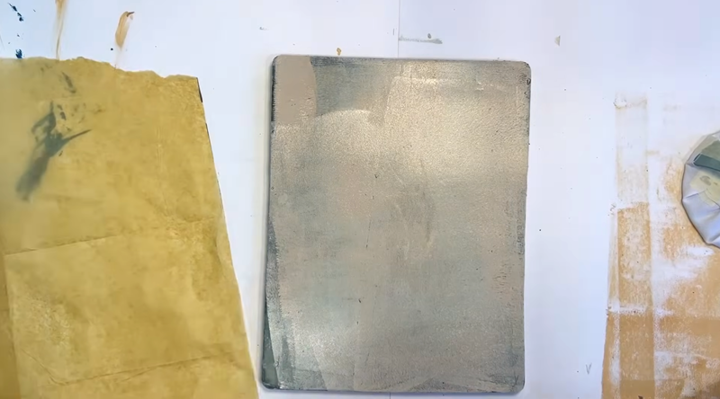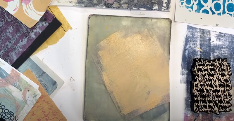 I’m working with my 8 x 10 Gelli plate for this printing session. It’s a great size for a variety of prints.