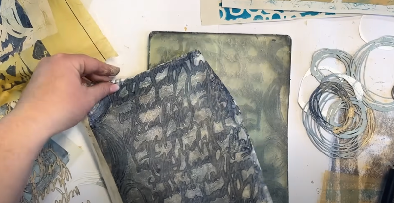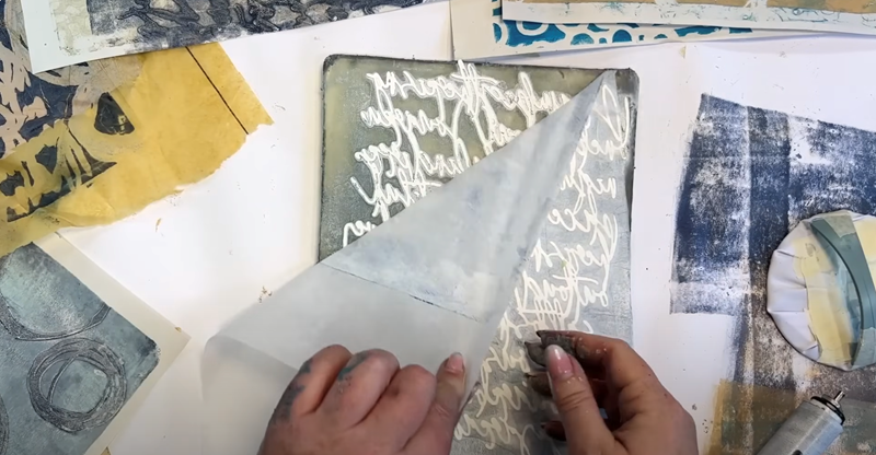Tip: When working with delicate papers, move quickly before the paint dries. Otherwise, the paper might tear or stick to the gel plate.