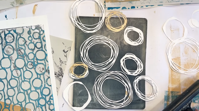 Now I’m going to try some of these single nested circle stencils. They’re such lovely organic shapes, which I really enjoy using, and I think they’re going to look great.