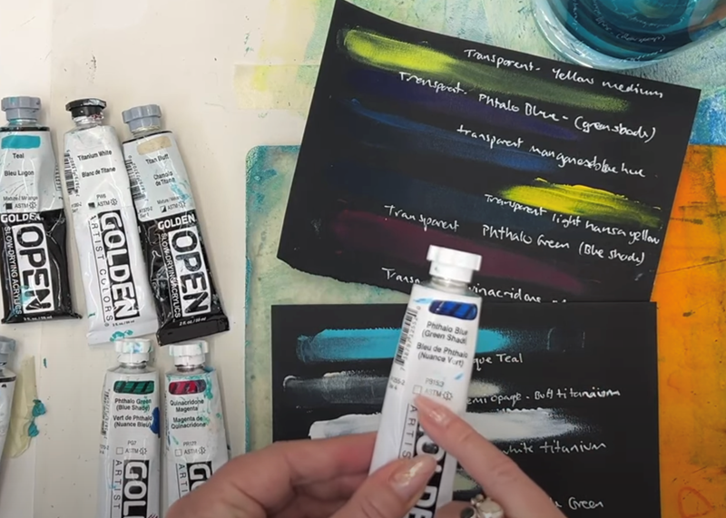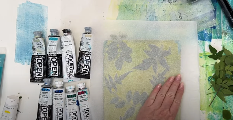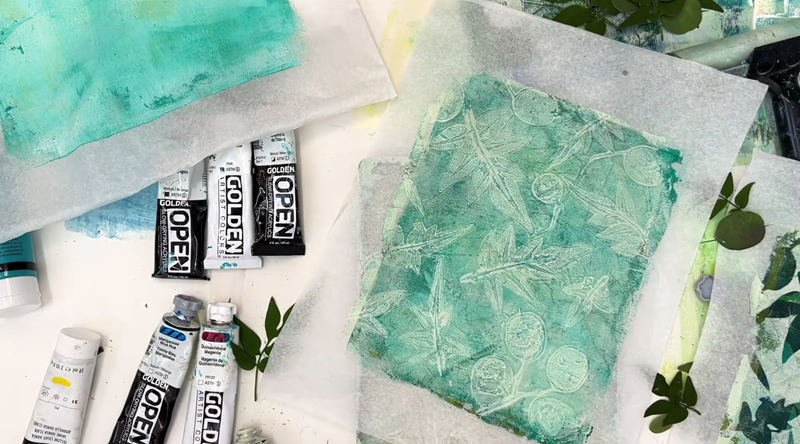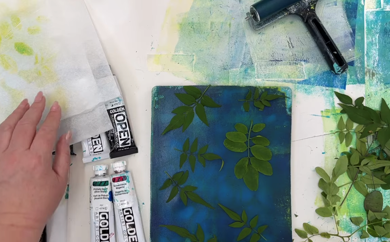 I’ll also show you a quick way to check your paint’s transparency, and how using the same materials - botanicals, Golden acrylics, and my very favourite tissue paper - can give you three totally different effects, just by changing how you layer opaque and transparent paints.