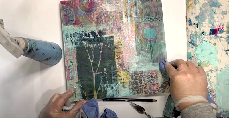 And now, in today's tutorial, we're bringing it all together! I'll be showing you how to add the final layers using botanical elements, coloured pencils, and paint—some of my favourite ways to add depth and detail to a piece.This painting has lots of layers and techniques to explore, from sanding back areas to layering multiple prints, and I think you'll find it really interesting.