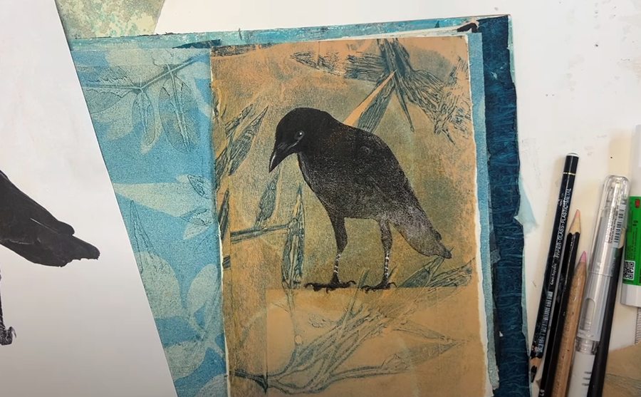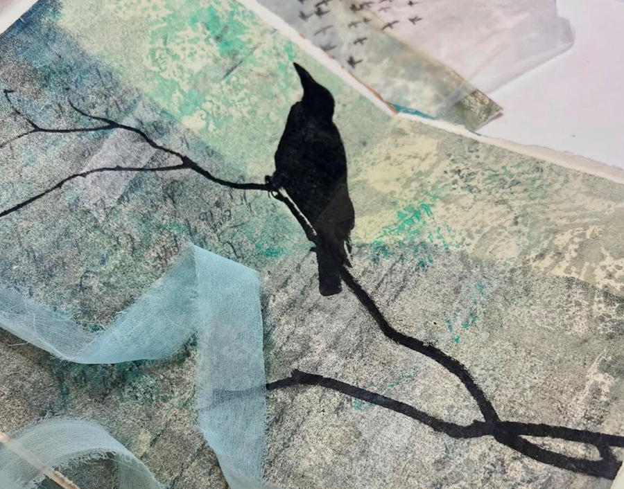 I've also started looking through some of my image transfers. I’m thinking about which backgrounds would work best with my bird prints. They're printed on Maruishi paper, a lovely thin tissue paper that's perfect for layering.