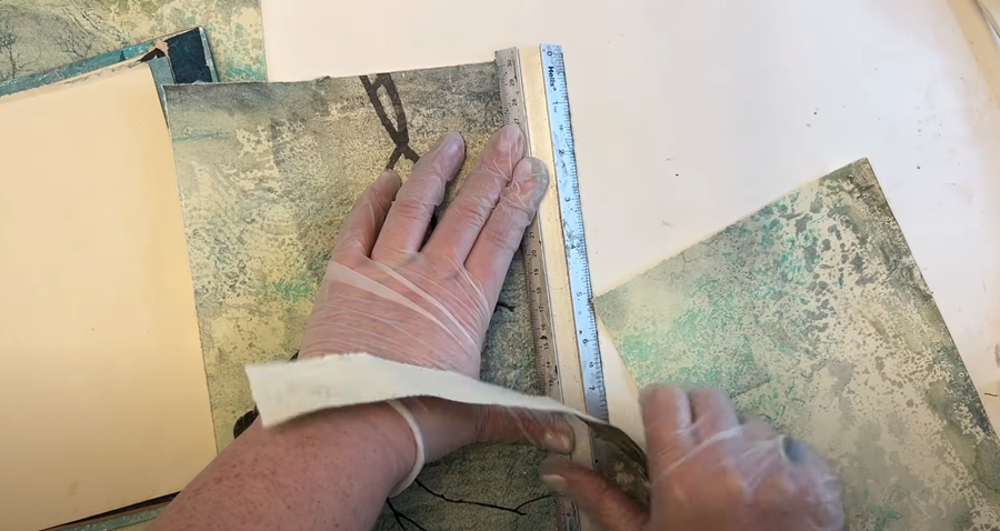 I do the same along the top and bottom edges - first checking that it fits the book, then placing my ruler along the edge and gently tearing off the excess.