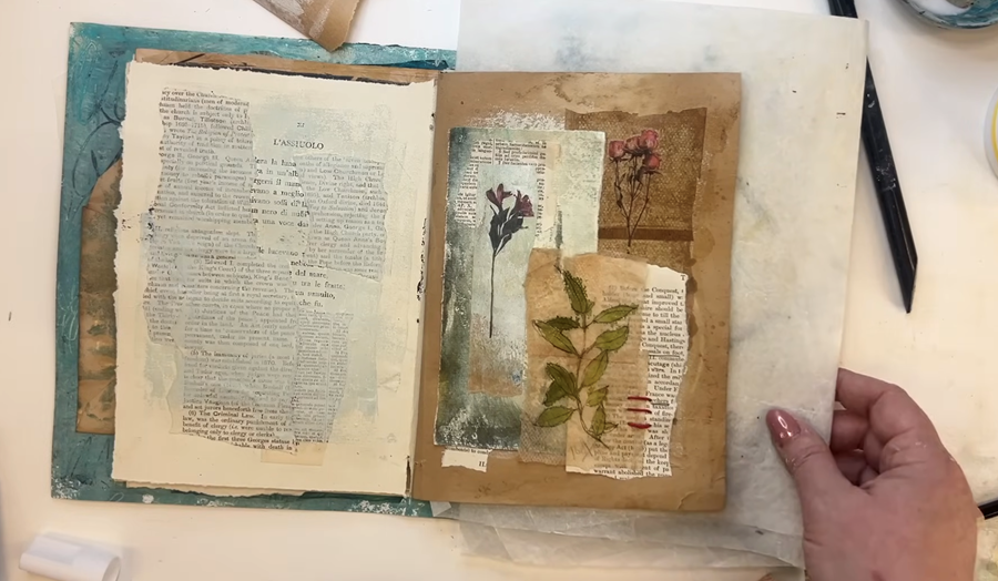Collage papers: This can be a combination of handmade & Gelli printed papers, fabric and vintage book pages.