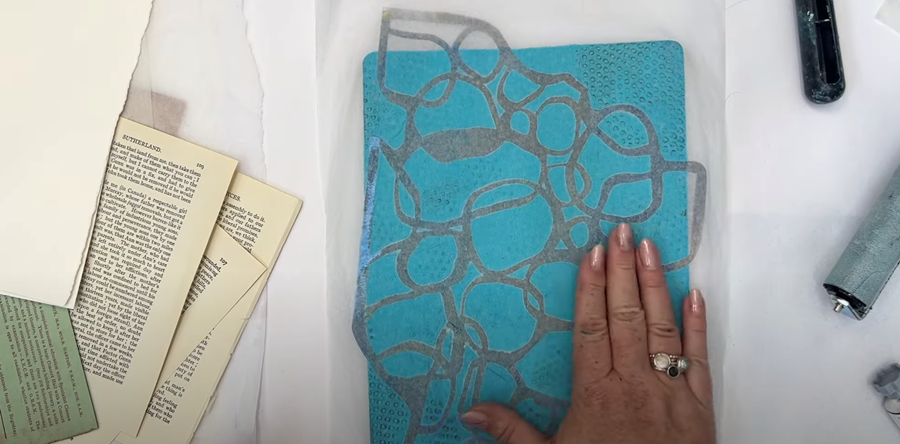 Then I place the same stencil over the top and create those same circular textures.
