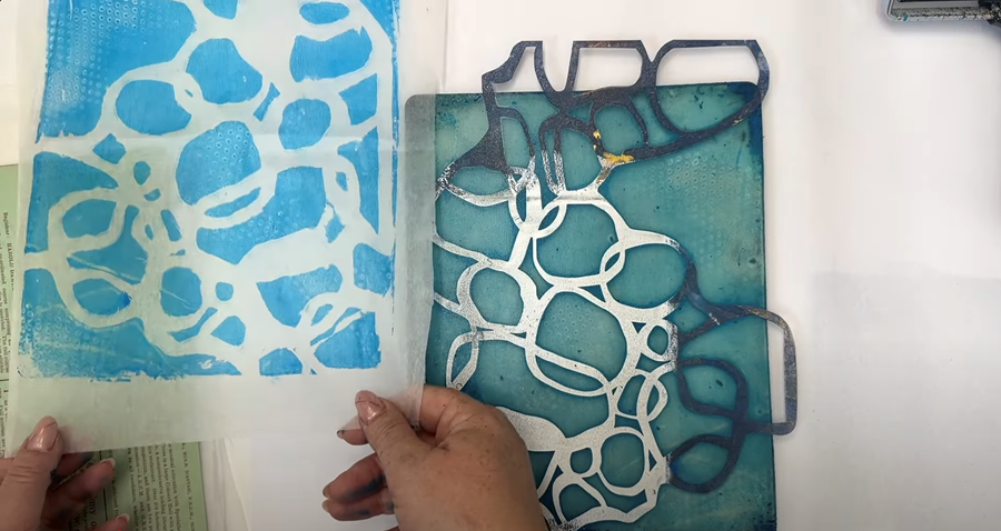 Now I remove the stencils and use one of my earlier prints to capture a second ghost print.