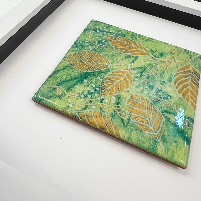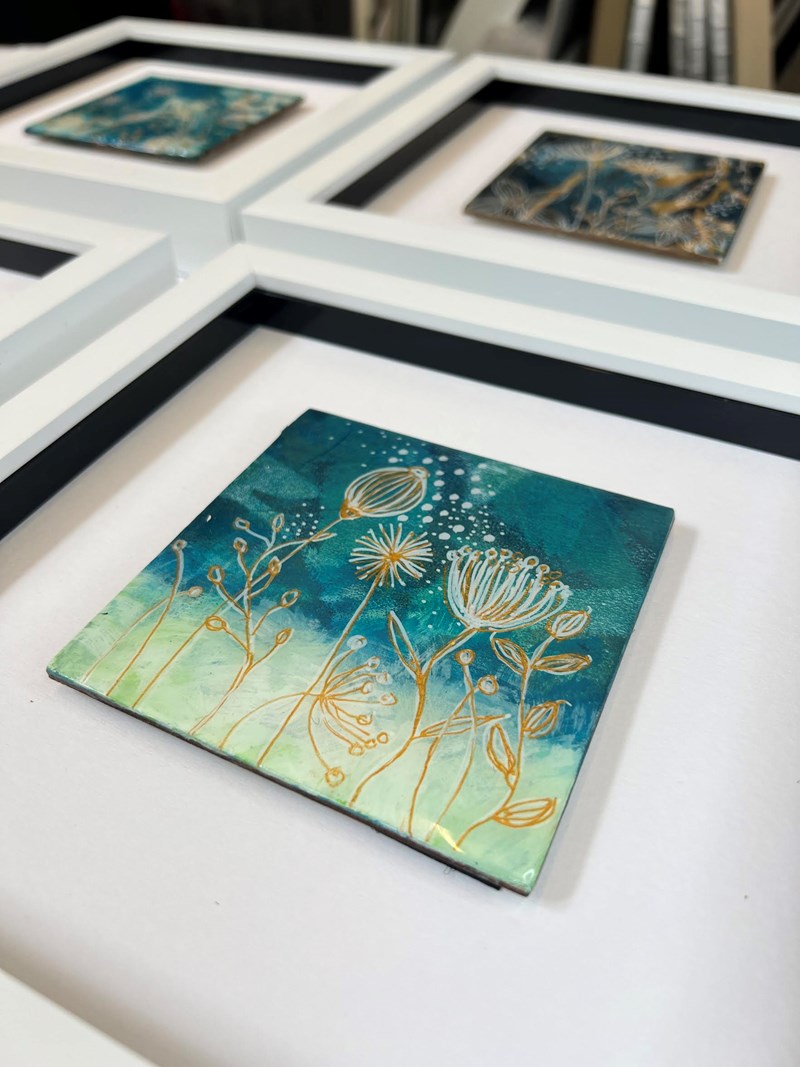 For my last set of prints, I’m using my favourite teal blend again, along with these fern-type leaves scattered across the surface.