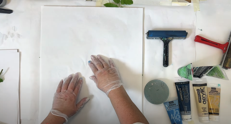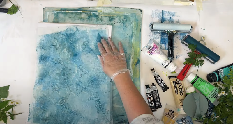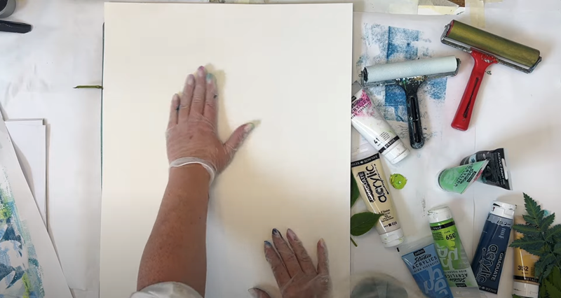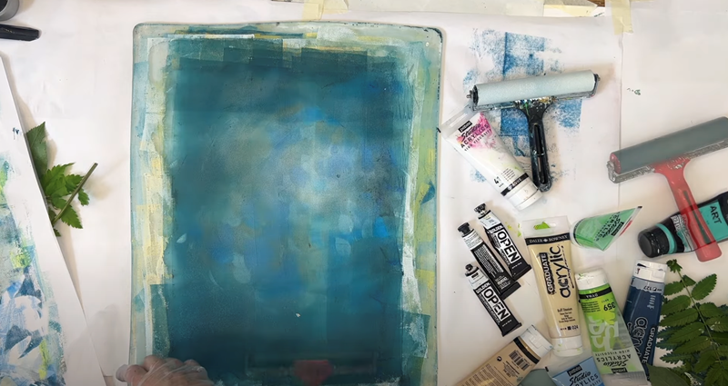 I’m working with my 16 x 20" Gelli plate. While you can absolutely try these techniques on a smaller plate, I find the larger surface gives me more flexibility when it comes to creating both small and large prints.