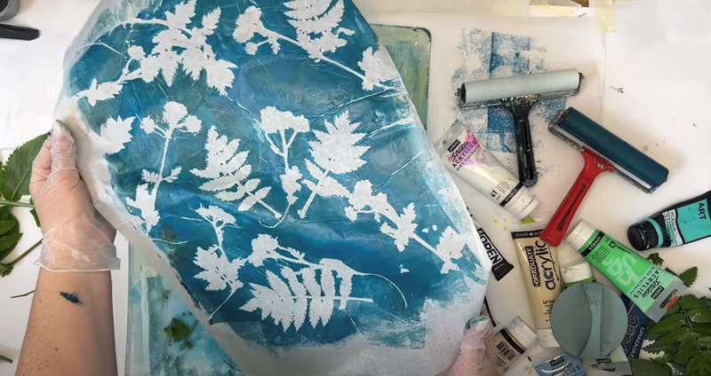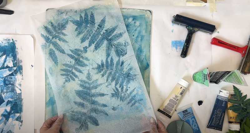 Now, I’ve removed the leaves to pull the ghost print, and as soon as I see it, I immediately know which paper I’m going to use!