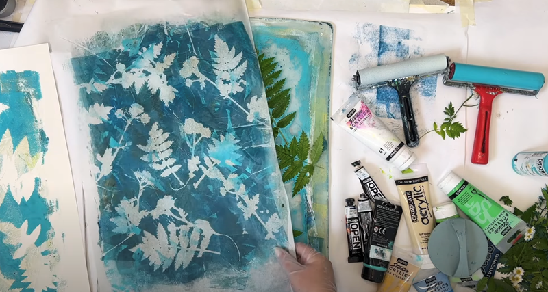 Last step is to remove the daisies and ferns, and then pull the ghost print using a piece of tissue paper.