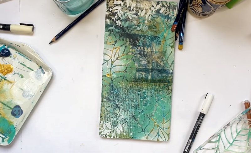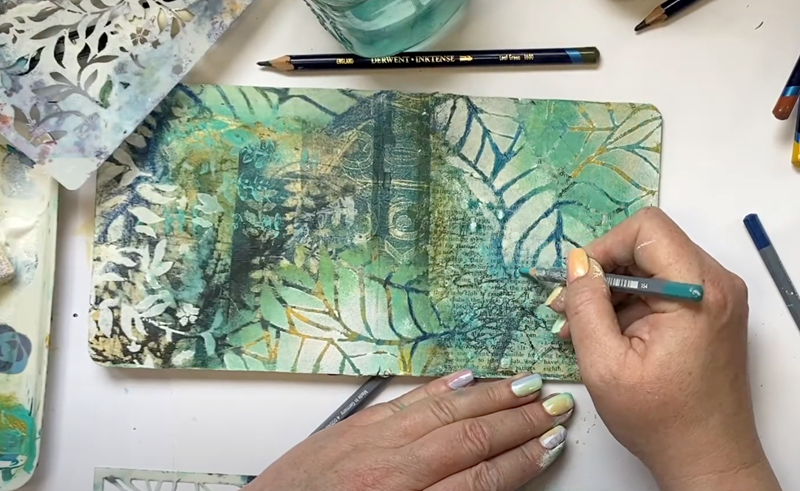 I’m using two botanical leaf stencils in this video—one with a slightly larger pattern than the other. They’re great for layering and adding movement to the page.